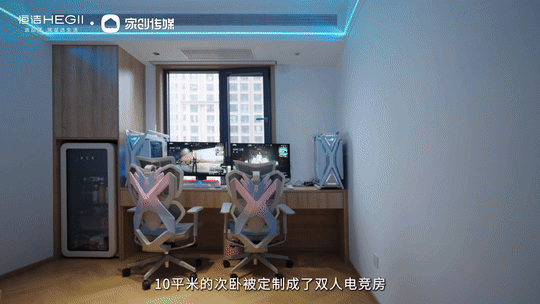 次卧被彻底改造为电竞天地:2.4m超长电脑桌可轻松容纳两人“开黑”,内嵌冰吧清凉随享,沉浸式游戏体验拉满。